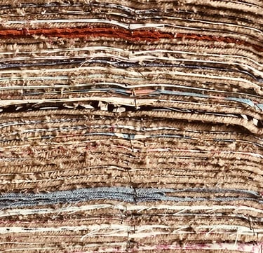 J'ai choisi aussi de travailler avec des matériaux de récupération : sacs de café, tissus de seconde main, matières brutes et pleines d’histoire. Donner une seconde vie à ces tissus est devenu une évidence. Ainsi sont nées mes premières créations textiles durables, entre authenticité et simplicité, ancrées dans l’envie de créer de mes propres mains en accord avec mes valeurs et notre planète.